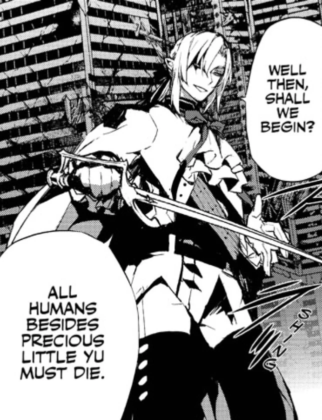 - ↑ Owari no Seraph chapter 1 (p. 14)